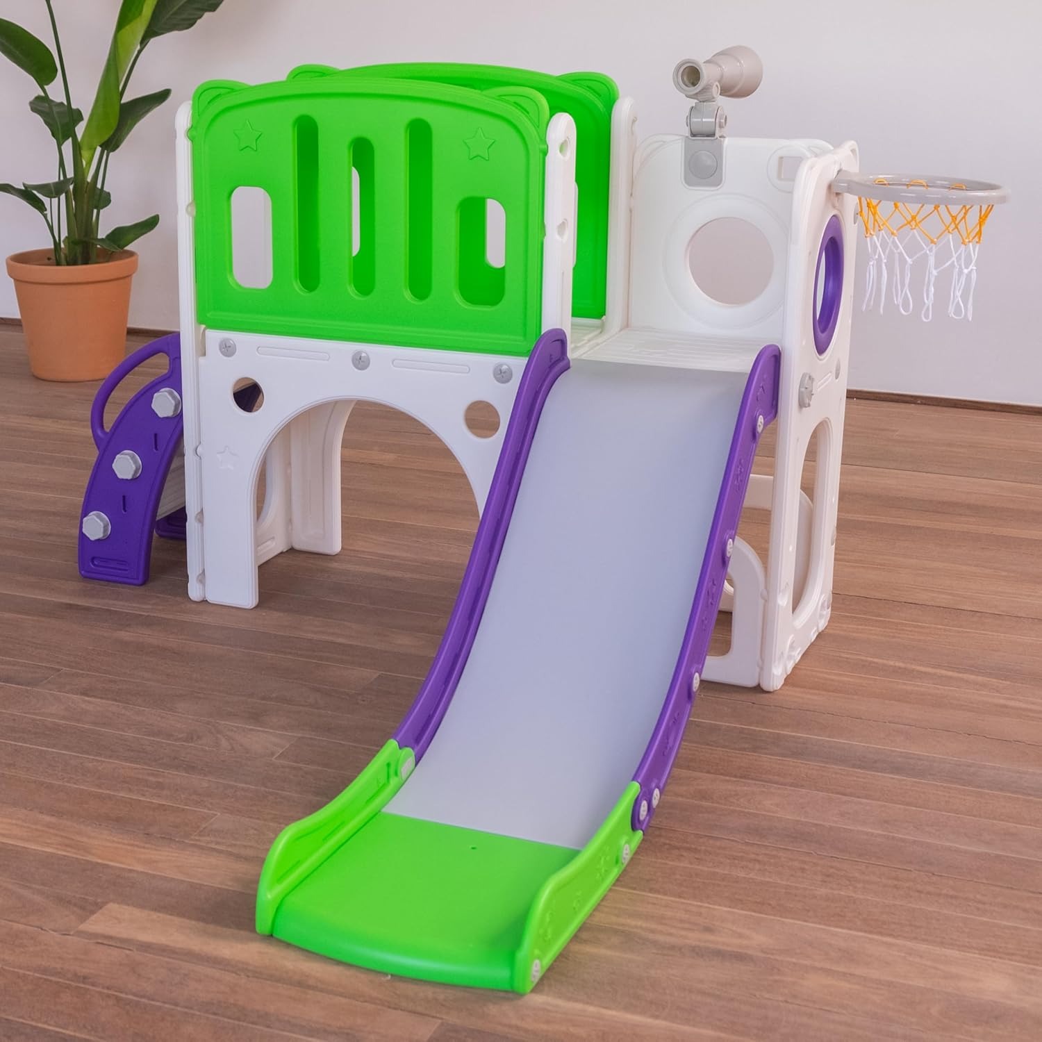 O Playground Indoor Infinity – 2 Torres é a opção ideal para garantir ainda mais diversão e desenvolvimento para crianças de até 2 anos dentro de casa. Com duas torres integradas, o brinquedo oferece escorregador, escadinha, aro de basquete e passagens para explorar, estimulando a coordenação motora, o equilíbrio, a socialização e a imaginação.